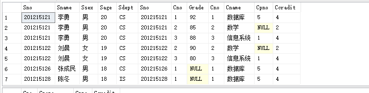 SELECT Student.Sno,Sname,Ssex,Sage,Sdept,Cno,Grade