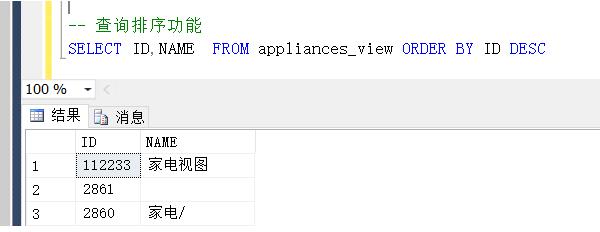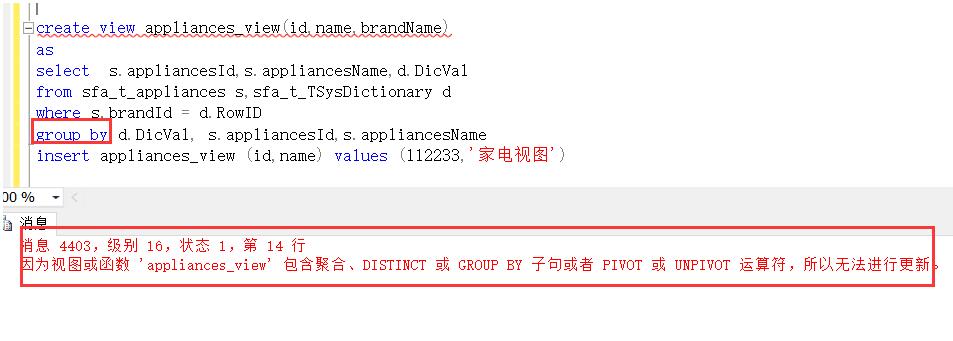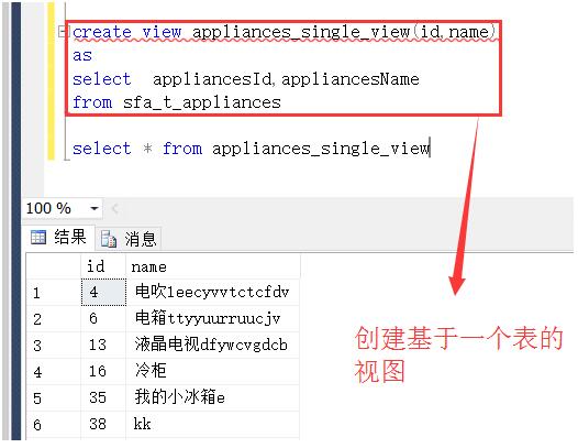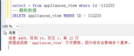 注意视图的创建语法:是通过关联关系获取到的数据。注意观看视图的三个字段的来源。自然,在appliancesID为112233的记录中没有brandID,所以自然不能读取到数据。