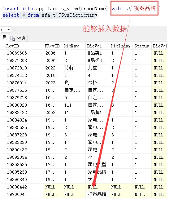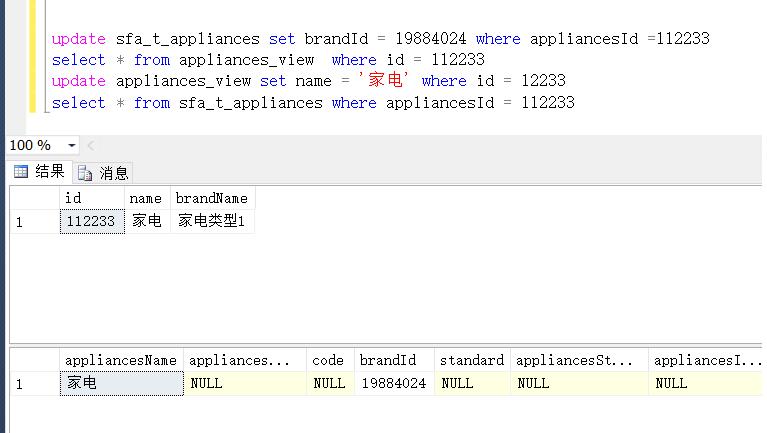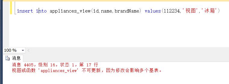 insert into appliances_view(id,name,brandName) values(112234,’视图’,’冰箱’)