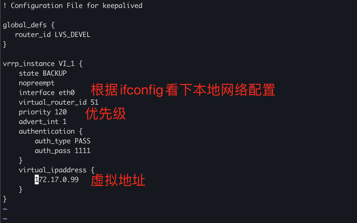 vim /etc/keepalived/keepalived.conf 最好先备份