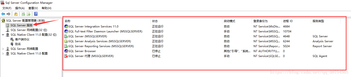 笔者安装只为学习用,所以不需要软件服务常开,把相关服务调成手动启动就可以节省电脑资源,在开始菜单里面寻找,sql server 服务管理器