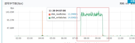 第一反应是不是数据库连接不够用了?导致超时?但是通过sql查询当时连接也只有40个左右,于是继续排查问题,发现dbserver机器这段时间磁盘io操作特别的高,很不正常,详见下图