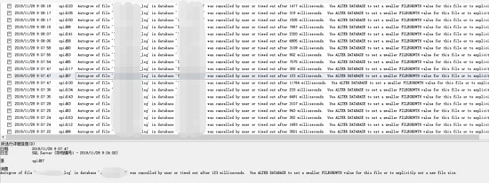 发现磁盘io问题,继续查看sqlserver日志,发现原因: “Autogrow of file ‘x_log’ in database ‘x’ was cancelled by user or timed out after 3398 milliseconds. Use ALTER DATABASE to set a smaller FILEGROWTH value for this file or to explicitly set a new file size.”