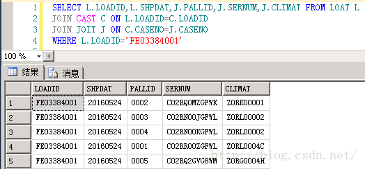 下面是我们熟悉的SELECT及输出格式,后面对JSON的演示基于此SQL: