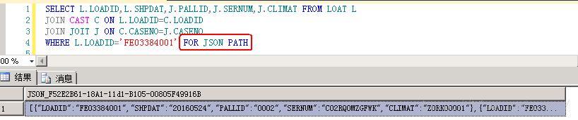 3、FOR JSON PATH输出:可通过列别名来定义JSON对象的层次结构