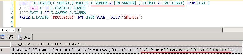 比如下面的SQL,增加了一个“SN”节点,把栏位SERNUM和CLIMAT放在里面: