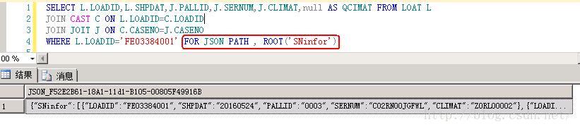 4、FOR JSON PATH+ROOT输出:为JOSN加上根节点