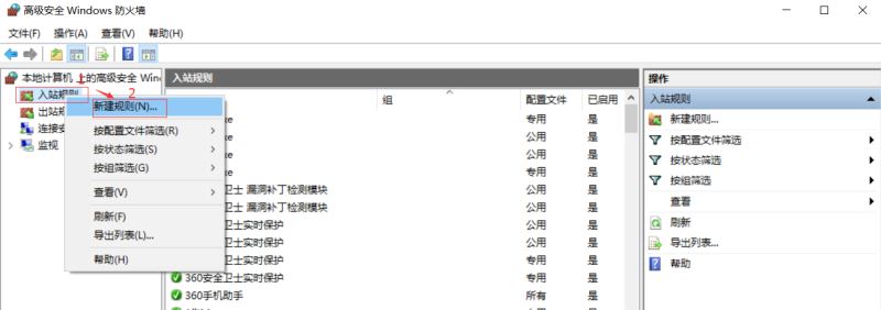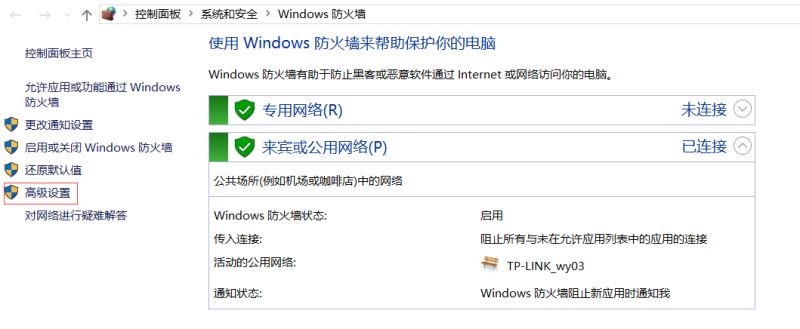 控制面板=>系统和安全 =>Windows防火墙=》高级设置