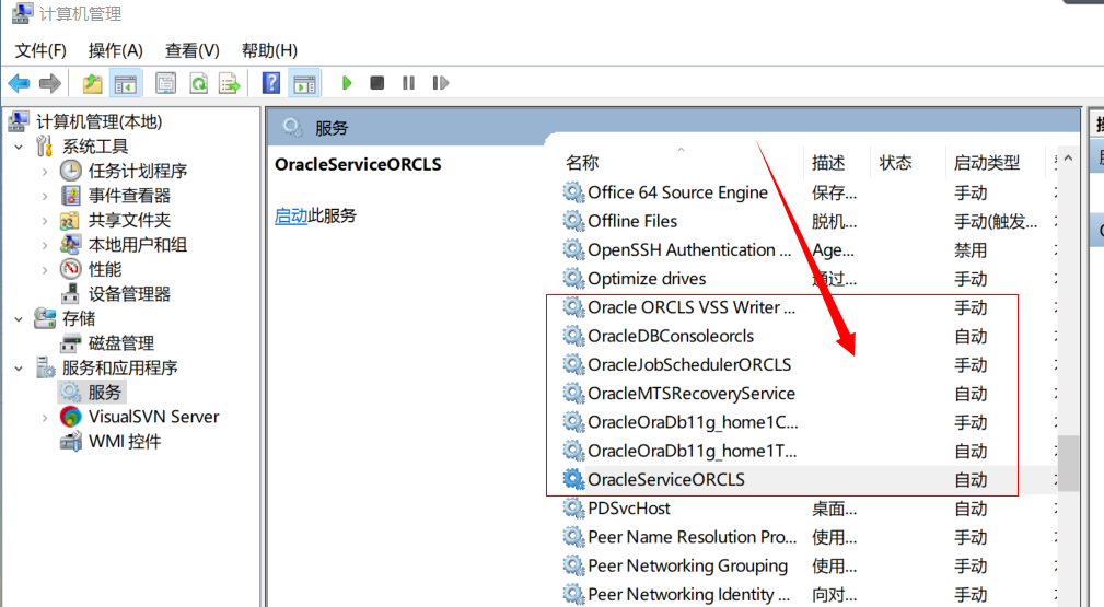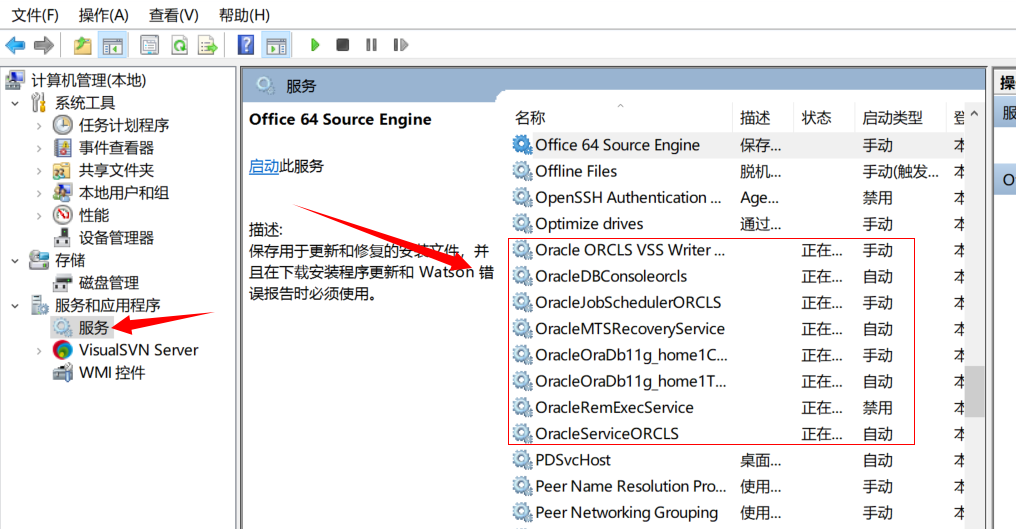 停用oracle服务,进入计算机管理,在服务中,找到oracle开头的所有服务,右击选择停止。