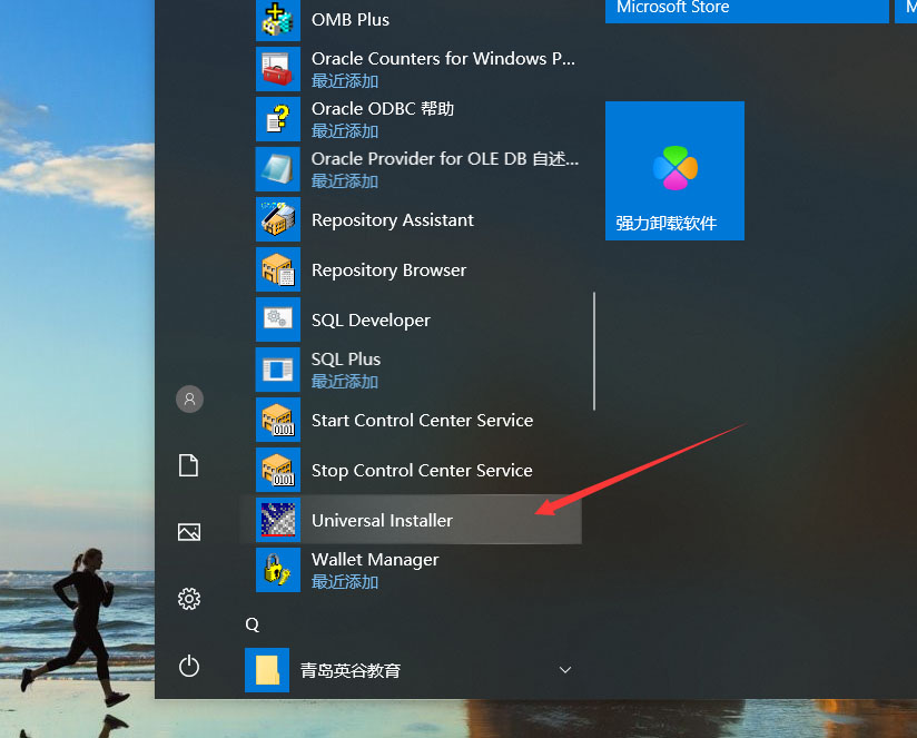 点击开始菜单找到Oracle,然后点击Oracle安装产品,再点击Universal Installer。