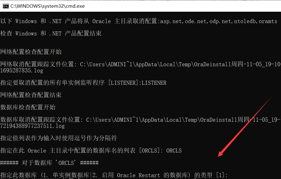 (1)、出现–指定要取消配置的所有单实例监听程序 [LISTENER]: 输入LISTENER如图所示—-然后回车