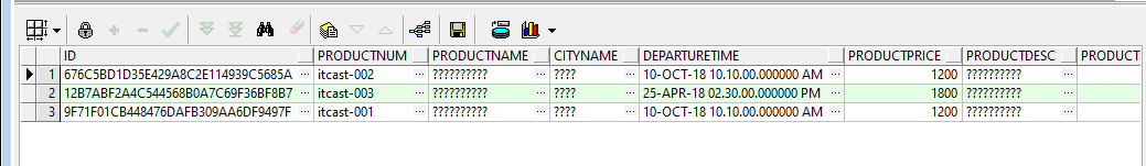 可以看到中文数据都乱码成了???????问号,