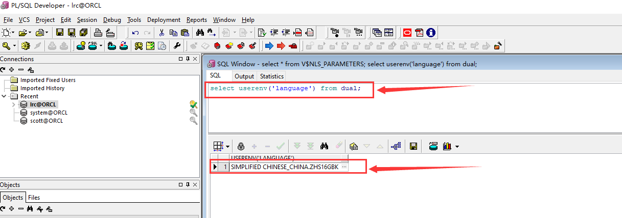 登录PL/sql developer,检查Oracle服务器端字符编码,用