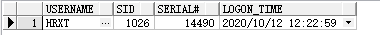select t2.username,t2.sid,t2.serial#,t2.logon_time