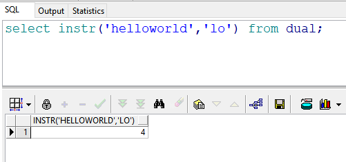 select instr(‘helloworld’,’lo’) from dual; –返回结果:4 即“lo”同时(连续)出现,“l”的位置