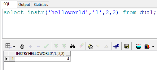 select instr(‘helloworld’,’l’,2,2) from dual; –返回结果:4 也就是说:在”helloworld”的第2(e)号位置开始,查找第二次出现的“l”的位置